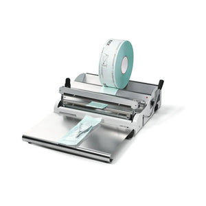 Dispositif d'étanchéité d'impulsion pour emballage de produits stériles avec signal acoustique de temps de soudage et témoin lumineux combiné. Répond aux exigences de la norme DIN 58953-7. Convient à tous les emballages de stérilisation standard avec et sans soufflet.