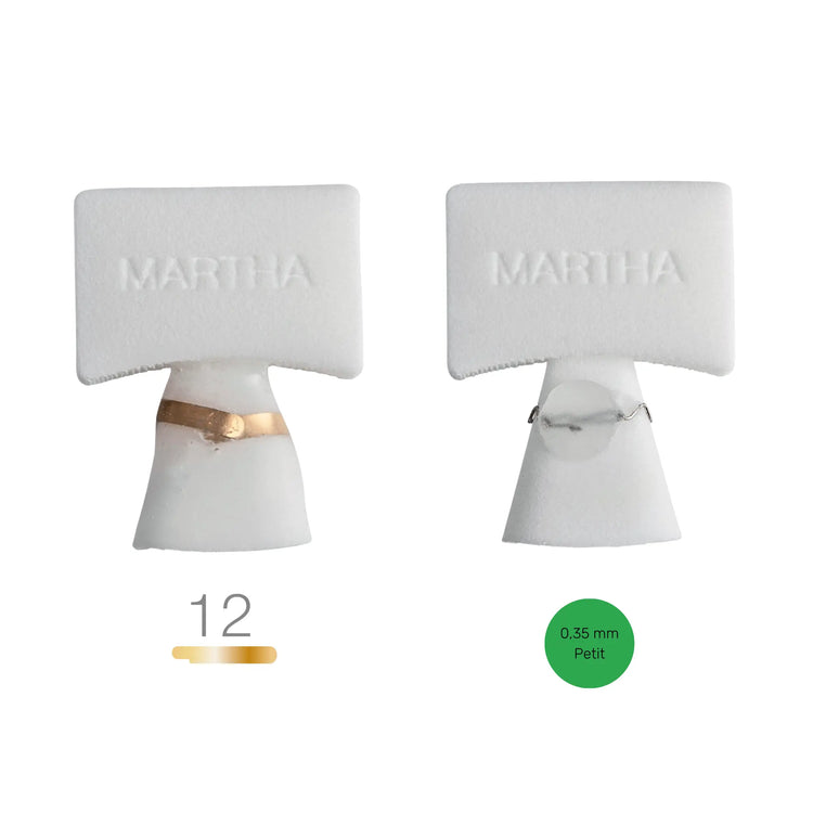 | Martha | Ongle qui s'élargit fortement vers l'avant et qui est légèrement enroulé | Simple accroche 12mm | Vert 0,35mm petit |