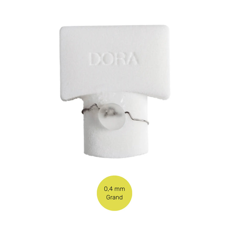| Dora | Ongle épaissi et fortement enroulé | Double accroche 23mm | Jaune 0,40mm grand |