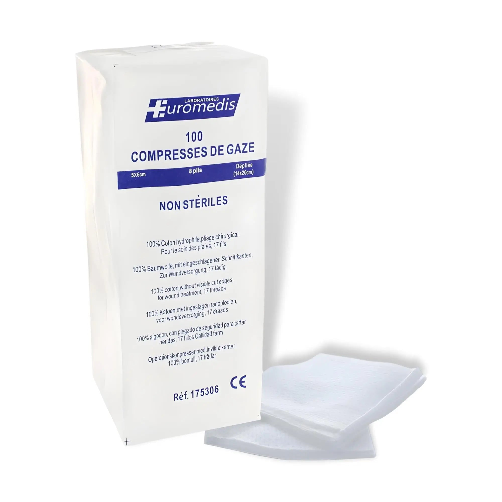 Non-sterile gas compress - Euromédis - 17 threads - Various sizes