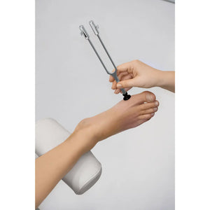 Vibration sensitivity is tested at the big toe joint, head of the fibula and other prominent bony prominences. stainless steel.