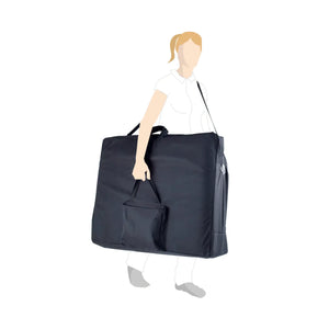 There is a large carrying bag with shoulder straps and storage space in the side pocket.